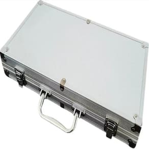 Maleta poker 200 fichas aluminio profissional jogo oficial baralho dados kit completo Maleta poker 200 fichas - 3,5g Reúna os amigos e sua família para horas de diversão com este incrível conjunto de poker de 200 peças. A maleta de alumínio oferece segurança e praticidade, com acabamento de luxo, alça e fechos cromados.