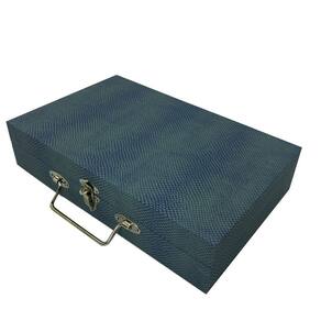 Ficha técnica - Material do exterior: Madeira - Com fechadura: Sim - Com espelho: Não - Fonte do produto: N/A - Material do interior: Couro - Quantidade de gavetas: N/A - Quantidade de compartimentos: N/A - Cor principal: Azul Marca: Não Informado