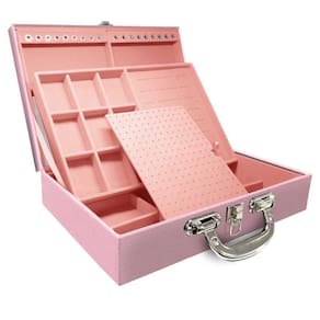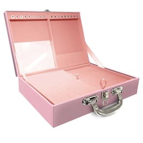 Maleta Dupla Grande Milão Rosa Com Alça Cromada e EspelhoMaleta estojo dupla grande organizadora de jóias, confeccionada em material MDF não em papelão com revestimento externo em couro sintético e interno com tecido aveludado de 1 linha, fazendo seu produto ter maior durabilidade valorizando e protegendo suas peças com estilo.Contém:- Espelho pequeno medidas aproximadas 16cm x 12cm ;- Espuma em corte H com suporte para aproximadamente 32 anéis;- Placa organizadora para aproximadamente 105 pares de brincos;- Aproximadamente 18 suportes para pulseiras ou correntes;- 9 quadriculados medidas aproximadas 5cm x 6,5cm para demais jóias;- 9 quadriculados medidas aproximadas 11cm x 7cm para demais jóias;- Fecho cromado;- Alça cromada.Imagens meramente ilustrativas.Medidas Aproximadas:Altura: 9cmLargura: 24cmComprimento: 36cmPeso: 2000gWMA10/C-TMR Marca: De Carvalho Jóias