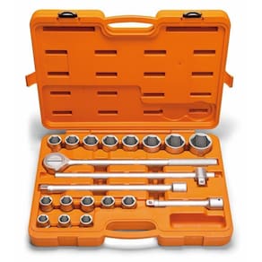 Soquete forjado em aço cromo vanádio e temperado.Acabamento cromado.Perfil Hyper Drive (de cantos arredondados).DIN 3124.Suporte plástico.Um grande avanço na produção dos soquetes é a introdução do conceito "Hyper Drive". Este novo perfil melhora o acoplamento do soquete na porca ou parafuso, reduzindo as tensões geradas no aperto, prolongando a vida do soquete e do elemento de fixação.Os soquetes são submetidos a testes rigorosos de torque e de dureza para atender a norma DIN 1711-1.Afrouxar e apertar parafusos e porcas sextavados.As ferramentas são produzidas e testadas conforme normas específicas.Conteúdo: 16 soquetes sextavados: 19, 21, 22, 23, 24, 26, 27, 29, 30, 32, 34, 36, 38, 41, 46, 50 mm; 4 acessórios: cabo T 20", 2 extensões 8", 15", catraca 20"; caixa plástica. Cor: Única