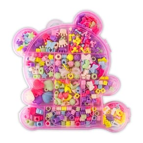 Características Principais: - Estimula a criatividade e coordenação motora; - Crie modelos de pulseiras e colares incríveis!; - Miçangas de cores vibrantes e formatos variados; - Ideal para presentear; - Caixa lúdica em formato de ursinho com 13 divisórias; - Acompanha fio de nylon para a criação das joias.