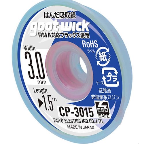 Malha Dessoldadora Goot Wick Reballing Bga Smd 3.0mm 1.5m Desenvolvida para remover solda em furos, componentes e trilhas em Placas de Circuito Impresso. A fita dessoldadora Goot Wick é um item crucial para soldagem / ressoldamento eletrônico, permitindo com facilidade a retirada do excesso de solda, garantindo assim a qualidade da soldagem.