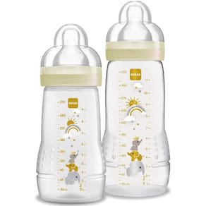 O Easy Active Set é formado por duas mamadeiras: uma Easy Active 270ml e uma Easy Active 330ml, ideal para presentear. As Mamadeiras Easy Active MAM, foram desenvolvidas com ajuda de especialistas da saúde e são recomendada a partir de 4 meses. Fácil de segurar de forma independente, o formato ergonômico da mamadeira Easy Active é ideal para mãos pequenas. Além disso, cores vibrantes e designs encantadores chamam a atenção Bico MAM com tecnologia SkinSoft, macio com superfície texturizada e sedosa, comprovadamente aceita por 94% das crianças 1 Os bicos da MAM se encaixam em todas as mamadeiras da MAM e no copo Trainer+ 1. TAMPA - À prova de vazamento, protege da sujeira. Também funciona como copo de medida graças à escala integrada .