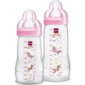 O Easy Active Set é formado por duas mamadeiras: uma Easy Active 270ml e uma Easy Active 330ml, ideal para presentear. As Mamadeiras Easy Active MAM, foram desenvolvidas com ajuda de especialistas da saúde e são recomendada a partir de 4 meses. Fácil de segurar de forma independente, o formato ergonômico da mamadeira Easy Active é ideal para mãos pequenas. Além disso, cores vibrantes e designs encantadores chamam a atenção Bico MAM com tecnologia SkinSoft, macio com superfície texturizada e sedosa, comprovadamente aceita por 94% das crianças 1 Os bicos da MAM se encaixam em todas as mamadeiras da MAM e no copo Trainer+ 1. TAMPA - À prova de vazamento, protege da sujeira. Também funciona como copo de medida graças à escala integrada .