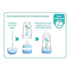 Esta Mamadeira Easy Start 130Ml E 260Ml Azul (0M+) - Mam foi desenvolvida pensando no máximo conforto e proteção para a pele sensível do bebê. Desenvolvida com atenção à todas as recomendações dos profissionais de saúde para garantir um produto de qualidade, que atenda às necessidades dos pais e proporcionando conforto aos bebês.________________Mais informações sobre o produto:Mamadeira Easy Start 130ml e 260ml (0+ meses ) Anticólica MAMMamadeira Easy Start 130ml e 260ml é recomendada a partir de 0 meses de idade.A MAM desenvolveu e patenteou um bico simétrico de silicone ultra macio. Comprovadamente aceita por 94% das crianças.Menos cólicas e regurgitação graças à base ventilada que proporciona um fluxo regular sem interrupção. Menos cólica confirmado por 80% das mães.Totalmente desmontável facilitando a limpeza.Autoesterilizável em 3 minutos.Itens do Conjunto:Mamadeira Easy Start 260 ml Bico Tam.2Mamadeira Easy Start 130 ml Bico Tam.0Anúncio da Mamadeira Easy Start 130ml e 260ml AZUL (0m+) - MAMMedida Produto:Peso: 108 gAltura: 14 cmLargura: 7 cmComprimento: 7 cmMedida Embalagem:Peso: 100 gAltura: 8 cmLargura: 19 cmComprimento: 17 cmAviso importante: este produto somente deve ser usado na alimentação de crianças menores de 1 (um) ano de idade com indicação expressa de médico ou nutricionista. O aleitamento materno evita infecções e alergias e fortalece o vínculo mãe-filho.Sobre a marca:Desde 1976 a MAM atua desenvolvendo produtos para bebês e crianças, que ajudem no seu desenvolvimento além de tornar o dia a dia com o bebê mais fácil para os pais. Ean: 9001616718014