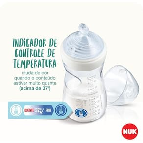 Esta Mamadeira Essence Smart Flow 150Ml +0M Azul Nuk foi desenvolvida pensando no máximo conforto e proteção para a pele sensível do bebê. Desenvolvida com atenção à todas as recomendações dos profissionais de saúde para garantir um produto de qualidade, que atenda às necessidades dos pais e proporcionando conforto aos bebês. ________________ Mais informações sobre o produto: Baseado em estudos clínicos e científicos , o sistema revolucionário do bico de mamadeira da NUK Essence Smart, com tecnologia 100% desenvolvida, testada e fabricada na Alemanha, se destaca por possuir múltiplos furos que possuem alta aceitação entre as crianças pois variam em quantidade para assegurar um fluxo adequado de acordo com a consistência de cada alimento. -tampa com função antivazamento permite a vedação total da mamadeira sem o auxílio do disco de vedação; -formato que possui uma base ainda mais larga para oferecer maior conforto para a criança durante a alimentação; -mantém a conhecida e admirada qualidade NUK com uso de um silicone supermacio e resistente; -bocal Extra largo facilita a limpeza e o preparo do alimento na mamadeira; -válvula Nuk Air System, que reduz a ingestão de ar durante a alimentação; -frasco super-resistente, em formato anatômico e livre de BPA; -bico: +0 meses fluxo lento 3 furos. Com indicador de temperatura para ajudar os pais na tarefa de assegurar a temperatura adequada dos alimentos para o consumo da criança. Idealmente, a comida para crianças deve ter a temperatura corporal 37ºC= Tom escuro . Se o conteúdo do frasco estiver muito quente, o indicador de temperatura ficará branco. Aguarde o indicador voltar à cor azul para oferecer a mamadeira à criança. Aviso importante: este produto somente deve ser na alimentação de crianças menores de 1 um ano de idade com indicação expressa de médico ou nutricionista. O aleitamento materno evita infecções e alergias e fortalece o vínculo mãe-filho. Sobre a marca: A NUK ajuda a promover o crescimento saudável dos bebês com produtos seguros, simples e que estimulem o seu desenvolvimento. A empresa foi fundada por dois renomados odontopediatras na Alemanha, em 1956, e sua filosofia segue sendo tão importante hoje como era então: Apoiar e promover o desenvolvimento oral dos bebês. Marca: Não Informado