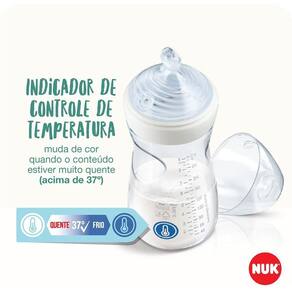 Esta Mamadeira Essence Smart Flow 270Ml +6M Azul Nuk foi desenvolvida pensando no máximo conforto e proteção para a pele sensível do bebê. Desenvolvida com atenção à todas as recomendações dos profissionais de saúde para garantir um produto de qualidade, que atenda às necessidades dos pais e proporcionando conforto aos bebês. ________________ Mais informações sobre o produto: Baseado em estudos clínicos e científicos , o sistema revolucionário do bico de mamadeira da NUK Essence Smart, com tecnologia 100% desenvolvida, testada e fabricada na Alemanha, se destaca por possuir múltiplos furos que possuem alta aceitação entre as crianças pois variam em quantidade para assegurar um fluxo adequado de acordo com a consistência de cada alimento. -tampa com função antivazamento permite a vedação total da mamadeira sem o auxílio do disco de vedação; -formato que possui uma base ainda mais larga para oferecer maior conforto para a criança durante a alimentação; -mantém a conhecida e admirada qualidade NUK com uso de um silicone supermacio e resistente; -bocal Extra largo facilita a limpeza e o preparo do alimento na mamadeira; -válvula Nuk Air System, que reduz a ingestão de ar durante a alimentação; -frasco super-resistente, em formato anatômico e livre de BPA; -bico: +6 meses fluxo médio 6 furos. Com indicador de temperatura para ajudar os pais na tarefa de assegurar a temperatura adequada dos alimentos para o consumo da criança. Idealmente, a comida para crianças deve ter a temperatura corporal 37ºC= Tom escuro . Se o conteúdo do frasco estiver muito quente, o indicador de temperatura ficará branco. Aguarde o indicador voltar à cor azul para oferecer a mamadeira à criança. Aviso importante: este produto somente deve ser na alimentação de crianças menores de 1 um ano de idade com indicação expressa de médico ou nutricionista. O aleitamento materno evita infecções e alergias e fortalece o vínculo mãe-filho. Sobre a marca: A NUK ajuda a promover o crescimento saudável dos bebês com produtos seguros, simples e que estimulem o seu desenvolvimento. A empresa foi fundada por dois renomados odontopediatras na Alemanha, em 1956, e sua filosofia segue sendo tão importante hoje como era então: Apoiar e promover o desenvolvimento oral dos bebês. Marca: Não Informado