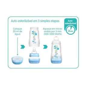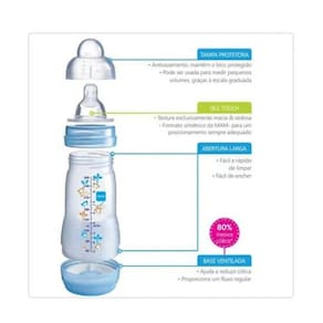 Esta Mamadeira Mam Easy Start Anti-Cólica130Ml foi desenvolvida pensando no máximo conforto e proteção para a pele sensível do bebê. Desenvolvida com atenção à todas as recomendações dos profissionais de saúde para garantir um produto de qualidade, que atenda às necessidades dos pais e proporcionando conforto aos bebês.________________Mais informações sobre o produto:Mamadeira Mam Easy Start Anti-Cólica130MlA easy Start 130 ml é recomendada a partir de 0 meses de idade.A MAM desenvolveu e patenteou um bico simétrico de silicone ultramacio. Comprovadamente aceita por 94% das criançasMenos cólicas e regurgitação graças à base ventilada que proporciona um fluxo regular sem interrupção. Menos cólica confirmado por 80% das mães¹Totalmente desmontável facilitando a limpezaAutoesterilizável em 3 minutosCE-PUR/IQB 000153 NBR 13793/2012 – OCP 006Aviso importante: este produto somente deve ser usado na alimentação de crianças menores de 1 (um) ano de idade com indicação expressa de médico ou nutricionista. O aleitamento materno evita infecções e alergias e fortalece o vínculo mãe-filho.Sobre a marca:Desde 1976 a MAM atua desenvolvendo produtos para bebês e crianças, que ajudem no seu desenvolvimento além de tornar o dia a dia com o bebê mais fácil para os pais.