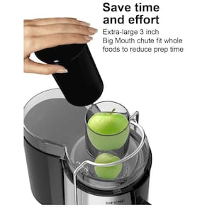 DESIGN PENSATIVO PARA VOCÊ As espremedoras de sucos de 3 velocidades atendem às suas necessidades. Velocidade BAIXA para alimentos moles, como laranja, uva, couve, morango, tomate, Velocidade ALTA para alimentos duros, como maçã, cenoura, beterraba, gengibre, aipo, etc. P Velocidade INSTANTÂNEA, atingir o máximo acelere instantaneamente e recupere após a liberação de alimentos residuais.