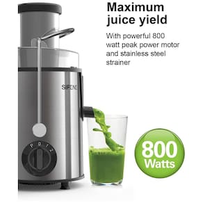 QUALIDADE DE VIDA PARCEIRO MAMAS CHOICE espremedor centrífugo de MAMAS CHOICE, adota lâminas afiadas de aço inoxidável 304 de grau alimentar resistente à corrosão e filtro de precisão, podemos obter o suco puro e saudável em segundos, extrair vitaminas e minerais com eficiência, menos entupimento e menos espuma .