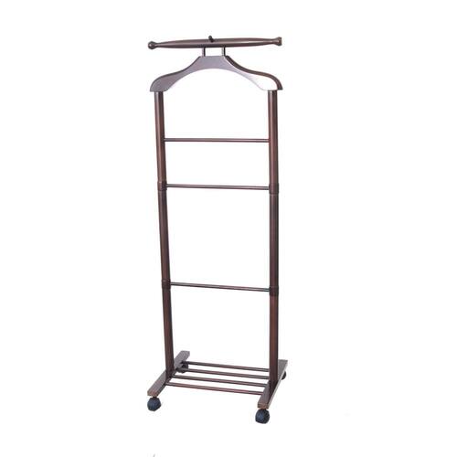 Cabideiro mancebo de chão produzido com madeira regularizada na cor tabaco , possui nichos para calça, gravata, relógio, paletó, camisa e sapatos. Acabamento primoroso. Para limpeza utilize pano seco.