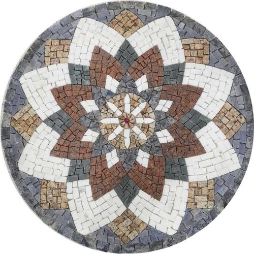 Especificações técnicas do mosaico: Feito com pedras - Mármores e granitos de todo o e importados da Europa e Ásia - para obter todas as cores desejadas em pedras naturais; Vem todo montado sobre tela, só colocar conforme manual de colocação, Resistência e Durabilidade em área interna e externa; Espessura de 10 mm Mesma espessura do porcelanato ou piso cerâmico Liso e agradável para uso diário; Mosaico feito integralmente à mão com técnica do mosaico romano; Dúvidas frequentes: