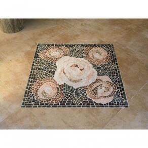 Pedras utilizadas: Granito Vermelho Brasília, Mármore Rosa Salmão, Mármore Rosso Verona, Granito Preto S. Gabriel, Pedras com tons de roxo, Tons de Verdes e Mármore Branco espirito santo. Os tons podem variar conforme o lote das pedras.