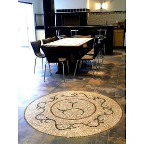Piso mandala em mosaico feito com pedras