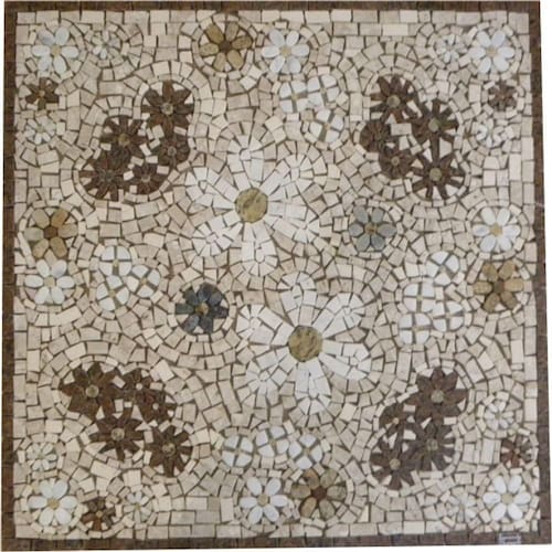 Especificações técnicas do mosaico: Feito com pedras - Mármores e granitos de todo o e importados da Europa e Ásia - para obter todas as cores desejadas em pedras naturais; Vem todo montado sobre tela, só colocar conforme manual de colocação, Resistência e Durabilidade em área interna e externa; Espessura de 10 mm Mesma espessura do porcelanato ou piso cerâmico Liso e agradável para uso diário; Mosaico feito integralmente à mão com técnica do mosaico romano;