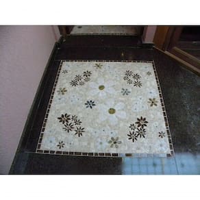 Especificações técnicas do mosaico: Feito com pedras - Mármores e granitos de todo o e importados da Europa e Ásia - para obter todas as cores desejadas em pedras naturais; Vem todo montado sobre tela, só colocar conforme manual de colocação, Resistência e Durabilidade em área interna e externa; Espessura de 10 mm Mesma espessura do porcelanato ou piso cerâmico Liso e agradável para uso diário; Mosaico feito integralmente à mão com técnica do mosaico romano;