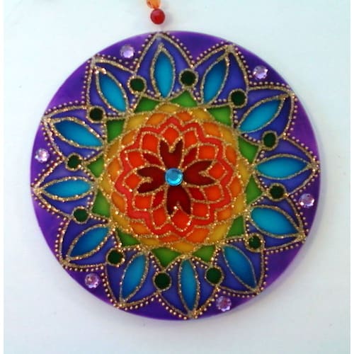 Mandala em acrílico de 15cm de diâmetro. Pintura vitral, decorado em ambos os lados. Produto artesanal, feito a mão. Marca: Não Informado Ean: 7899895458224