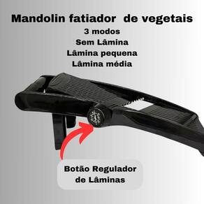 Ele possui uma lâmina ajustável, que permite cortar os alimentos com espessuras e formatos diferentes.