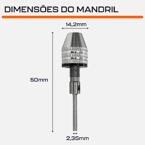 Mandril Aperto Rápido 0.4 a 3.4mm Haste 2,35mm para Micro Retíficas Dremax - Marca: Dremax - Referência: MD038 - Capacidade do mandril: 0.3 a 3.4mm - Diâmetro da Haste: 2,35mm - Para uso com micro retíficas Dremel, Black Decker, Charbs, Einhell, Fort, Vonder, Dremax e qualquer outra marca que possua pinça de 3mm - Garantia: 90 dias contra defeitos de fabricação A DREMAX é a primeira e única marca brasileira dedicada exclusivamente às micro retíficas, acessórios e acoplamentos para esta indispensável ferramenta. Seja para trabalhos de precisão, artesanato, modelagem ou reparos, a DREMAX tem o produto certo para você. Marca: Dremax