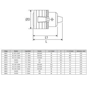 O Mandril com Chave Linha Leve é indicado para furadeiras manuais de impacto, coluna, bancada e pneumática, fresadoras, cabeçotes de rosqueamento, tornos e centros de usinagem.