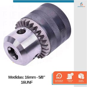 CARACTERÍSTICAS TÉCNICAS: Material: Aço Medidas: 16mm - 5/8” (abertura) Diâmetro do corpo: 50mm Capacidade mínima: 3mm Capacidade máxima: 16mm Tipo de mandril: Com chave Tipo de encaixe do mandril: Rosca Acompanha chave para mandril Marca: Starfer Ref.: 9121021