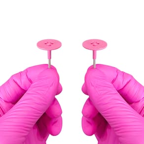 Mandril plantar na cor rosa, modelo compatível com sistema de 3 furos PodoSystem, indicado para uso com lixas plantares e micromotores padrão.