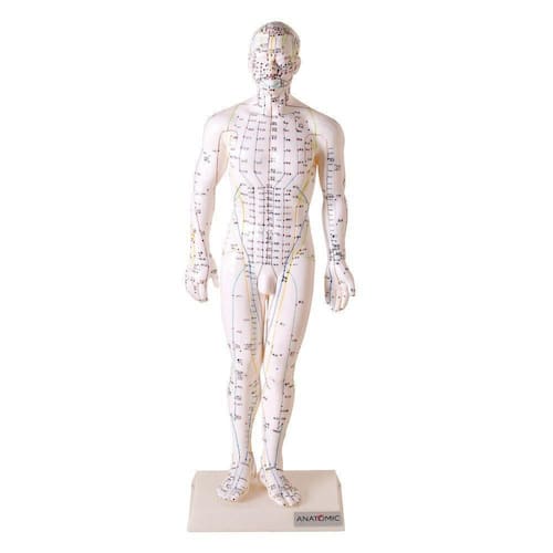 Modelo confeccionado em material emborrachado, reproduz em detalhes todos os chácaras e meridianos, juntamente com todos os pontos para acupuntura. Acompanha suporte de madeira e haste cromada. Embalagem: Caixa de papelão Comprimento x Largura x Altura: 19 cm x 11 cm x 51 cm Peso: 1,243 kg