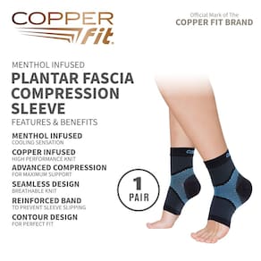 Copper Fit Ice – Manga de compressão para pés e tornozelos plantares infundida com mentol, 1 par, Preto
