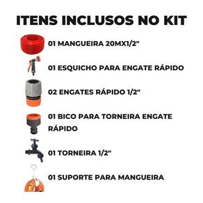 Mangueira de Jardim Siliconada Dupla Camada com 20 Metros Antitorção Perfeita para auxiliar nos cuidados ao ar livre, possibilitando alcançar os lugares mais difíceis na hora de lavar ou irrigar. Ela é eficiente e garante alta flexibilidade além de resistência, Devido ao PVC presente em sua composição. Fabricada em PVC Flexível, evita torção garantindo alta eficiencia e flexibilidade além de resistência. É um produto que leva conforto e bem-estar para as tarefas do dia-a-dia. CARACTERÍSTICAS Mangueira de Jardim Flexível com Dupla Camada Leve e Prática para Enrolar Alta Flexibilidade Devido ao Silicone em sua Composição Maior Resistência Devido a sua Segunda Camada de Polipropileno ESPECIFICAÇÕES TÉCNICAS Diâmetro: 1/2 Espessura: 2mm Pressão Maxima: 20 bar ou 290 psi à 25ºC Pressão de Trabalho: 120 psi Temperatura de Trabalho: +5 à +50ºC Suporte Alça Plástica Portátil Cinza Para Mangueira Astra A Alça Portátil para Mangueira Cinza Astra é um acessório essencial para quem busca praticidade e organização na utilização de mangueiras. Com um design ergonômico e funcional, essa alça é projetada para facilitar o manuseio da mangueira, proporcionando um enrolamento fácil e evitando emaranhados indesejados. CARACTERÍSTICAS - Pode ser fixado na parede para armazenamento conveniente - Pegada anatômica para fácil manuseio - Resistente à corrosão e não enferruja ESPECIFICAÇÕES TÉCNICAS Material: Polietileno Tipo: Alça Portátil Medidas: 10,8 x 1,1 x 60cm Cor: Cinza Esguicho Hidropistola 6 Jatos Mangueira Jardim Para Engate Rápido Para deixar suas plantas e flores muito mais saudáveis e bem irrigadas, conte com a hidropistola para engate rápido com multifunção Ideal para ser utilizada na jardinagem e para uso doméstico, ela é produzida com materiais de alta qualidade, ela conta com 6 tipos de jato d'água e garante uma irrigação precisa e confiável. ESPECIFICAÇÕES TÉCNICAS Compatível Com: Engate Rápido Largura: 6cm Altura: 15cm Profundidade: 19cm Material: Plástico Engate Rápido Para Mangueira de 1/2 Quer deixar sua mangueira sempre pronta para o uso Conte com o engate rápido para mangueiras de 1/2 polegada. Um item que permite que você possa conectar e desconectar sua mangueira na torneira em apenas um clique, facilitando sua vida e deixando suas tarefas muito mais práticas. ESPECIFICAÇÕES TÉCNICAS Compatível Com Mangueiras: 1/2 Largura: 3,6cm Altura: 3,6cm Profundidade: 5,3cm Material: Plástico Bico Engate Rápido Conexão Com Adaptador Para Torneira 1/2 ou 3/4 Quer deixar sua mangueira sempre pronta para o uso Conte com o bico engate rápido para torneiras de 3/4 + para torneiras de 1/2 polegada para realiza a conexão da mangueira à torneira. Um item que permite que você possa conectar e desconectar sua mangueira na torneira com mais simplicidade, facilitando sua vida e deixando suas tarefas muito mais práticas. ESPECIFICAÇÕES TÉCNICAS Compatível Com Torneiras: 1/2 e 3/4 Largura: 3,3cm Altura: 3,3cm Profundidade: 4,2cm Material: Plástico Torneira Plástica em PVC Para Jardim Tanque Pia Com 1/2 Polegada A torneira para lavatório possui o volante anatômico, que facilita a abertura e o fechamento, o plástico ABS com proteção UV, e a durabilidade e a qualidade sempre presente nos produtos Em nossos produtos. Fácil instalação, maior praticidade e durabilidade. ESPECIFICAÇÕES TÉCNICAS Largura: 10cm Altura: 13,5cm Diâmetro: 12,7cm 1/2 Material: Plástico PVC ITENS INCLUSOS 25M de Mangueira Dupla Camada Silicone Flexível 01 Alça Para Mangueira 01 Esguicho Hidropistola 6 Jatos Mangueira Jardim Para Engate Rápido 01 Engate Rápido 01 Bico Com Engate Rápido Para Torneiras de 3/4 + Adaptador para Torneiras de 1/2 01 Torneira Plástica Reforçada 1/2