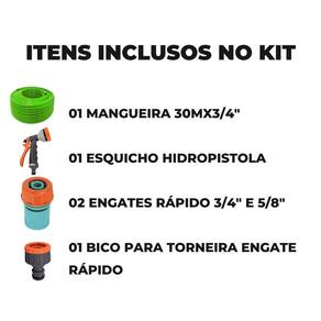 Mangueira de jardim 3/4 siliconada dupla camada com 30 metros antitorção Perfeita para auxiliar nos cuidados ao ar livre, possibilitando alcançar os lugares mais difíceis na hora de lavar ou irrigar. ela é eficiente e garante alta flexibilidade além de resistência, devido ao pvc presente em sua composição. Fabricada em pvc flexível, evita torção garantindo alta eficiencia e flexibilidade além de resistência. É um produto que leva conforto e bem-estar para as tarefas do dia-a-dia. Características Mangueira de jardim flexível com dupla camada Leve e prática para enrolar Alta flexibilidade devido ao silicone em sua composição Maior resistência devido a sua segunda camada de polipropileno Especificações técnicas Diâmetro: 3/4 Espessura: 2,5mm Pressão maxima: 20 bar ou 290 psi à 25ºc Pressão de trabalho: 120 psi Temperatura de trabalho: +5 à +50ºc Esguicho hidropistola 6 jatos mangueira jardim para engate rápido Para deixar suas plantas e flores muito mais saudáveis e bem irrigadas, conte com a hidropistola para engate rápido tramontina com multifunção ideal para ser utilizada na jardinagem e para uso doméstico, ela é produzida com materiais de alta qualidade, ela conta com 6 tipos de jato d'água e garante uma irrigação precisa e confiável. Seu cabo é anatômico com revestimento emborrachado e vai proporcionar um manuseio muito mais prático, garantindo a execução das suas tarefas com muito mais eficiência. Com a tramontina, você tem os utensílios perfeitos para sua rotina Fácil instalação, maior praticidade e durabilidade. Especificações técnicas Compatível com: engate rápido Largura: 6cm Altura: 15cm Profundidade: 19cm Material: plástico Engate rápido para mangueira de 3/4 e 5/8 Quer deixar sua mangueira sempre pronta para o uso Conte com o engate rápido para mangueiras de 3/4 e 5/8 de polegada. Um item que permite que você possa conectar e desconectar sua mangueira na torneira em apenas um clique, facilitando sua vida e deixando suas tarefas muito mais práticas. Fácil instalação, maior praticidade e durabilidade. Especificações técnicas compatível com mangueiras: 3/4 e 5/8 Largura: 4,3cm Altura: 4,3cm Profundidade: 6,3cm Material: plástico Bico engate rápido conexão com adaptador para torneira 1/2 ou 3/4 Quer deixar sua mangueira sempre pronta para o uso Conte com o bico engate rápido para torneiras de 3/4 + para torneiras de 1/2 polegada para realiza a conexão da mangueira à torneira. Um item que permite que você possa conectar e desconectar sua mangueira na torneira com mais simplicidade, facilitando sua vida e deixando suas tarefas muito mais práticas. Fácil instalação, maior praticidade e durabilidade. Especificações técnicas Compatível com torneiras: 1/2 e 3/4 Largura: 3,3cm Altura: 3,3cm Profundidade: 4,2cm Material: plástico O kit segue com todos os itens para montagem e pronto para uso após a instalação A se aplica a todo e qualquer vício ou defeito aparente ou que não estejam em conformidade com o produto. - 30 dias para a mangueira - 90 dias para o esguicho - 90 dias para o engate rápido - 90 dias para o bico com engate rápido Itens inclusos 01 esguicho hidropistola 6 jatos 02 engates rápido 01 bico com engate rápido para torneiras de 3/4 + adaptador para torneiras de 1/2 30m de mangueira dupla camada silicone flexível Marca: Não Informado Ean: 7894141408824
