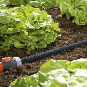 Esta mangueira aspersora é indicada para irrigação direcionada e com economia de água em fileiras de plantas, porque cumpre sua função mesmo com baixa pressão. Possui válvula para ajuste de vazão e pressão e vem pronta para ser conectada. Tem um comprimento de 7,5 m.