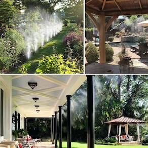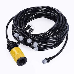 Kit Sistema de Climatização e resfriamento ideal para quintais, varandas, barracas gazebos e locais abafados que necessitam de diminuição na temperatura. A mangueira Possui 10 metros com 10 bicos pulverizadores que distribuem a névoa de água uniformemente pelo espaço, o kit vem com conector para torneiras e com braçadeiras para prender a mangueira em locais suspensos ou verticais.