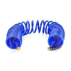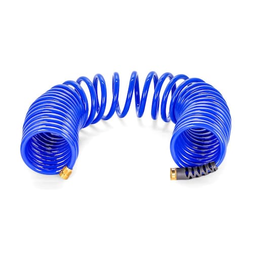 Camco Conexões de latão espiraladas resistentes à ferrugem de 102 cm, o design da mangueira evita dobras e emaranhados, para lavagem de carro e jardinagem (41985), azul