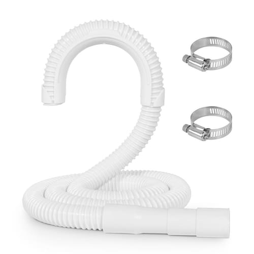 JUWO Mangueira de drenagem para máquina de lavar 1,8 m, substituição universal de mangueira de descarga ondulada para Whirlpool, GE, Kenmore, grampos e gancho incluídos, branco - ?Ajuste universal? Serve para tocos de 2,5 cm, 3,5 cm e 3,5 cm. As pontas de borracha podem ser cortadas na mangueira de drenagem adequada para a máquina de lavar. - ?Mangueira de 1,8 m? Para drenagem de curta distância da máquina de lavar até a pia ou tubo de drenagem. - ?Estrutura reforçada? A mangueira flexível de PVC corrugado manobra facilmente através de espaços apertados sem torcer e rachar. - ?Conexão firme? Grampos de aço inoxidável e um gancho removível para conexão sem vazamentos e manter o gancho no lugar. - ?Fácil de instalar? Basta aparar a extremidade da mangueira de drenagem da lavadora no tamanho desejado e apertar o grampo.
