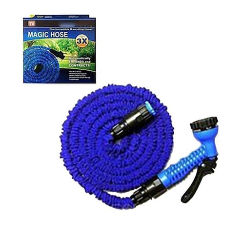 Mangueira mágica retrátil. Ele se expande automaticamente até 30 metros de comprimento quando a água é aberta. Ele se contrai automaticamente em segundos quando a água é fechada. Muito fácil de armazenar devido à retração total, ocupando muito pouco espaço.\ nAlta resistência e durabilidade.\ nTubo interno de látex de dupla camada, evitando vazamentos e explosões.\ nConector universal.\ nInclui:\ n1 mangueira de 30 metros\ n1 x Python com várias funções do conector principal rise1 x