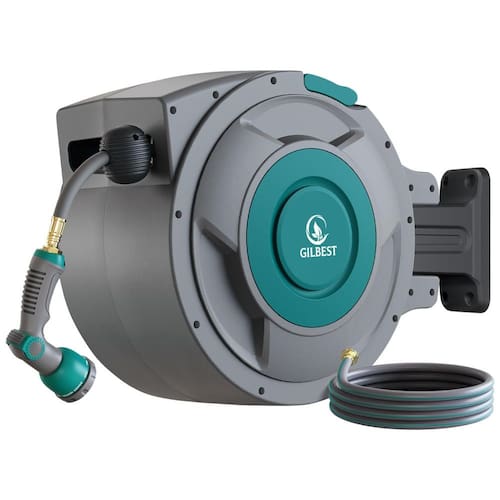O que você recebe: 1 carretel Gilbest com mangueira de 30 metros Bocal de mangueira de 1 unidade Bocal de spray de 10 funções de 1 unidade 1 unidade de montagem em parede 4 parafusos Manual do usuário de 1 unidade.
