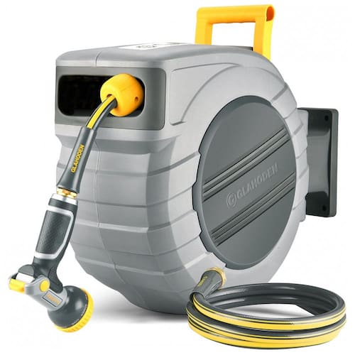 O diâmetro interno do conector de cobre NPT de 3, 4 equipado com o carretel de mangueira de jardim retrátil GLAHODEN foi expandido para 0,99 centímetros produtos semelhantes têm apenas 0,86 centímetros, o que aumenta sua produção de água em 20 em comparação com produtos similares, permitindo lhe desfrutar de horários de trabalho mais descontraídos.
