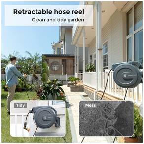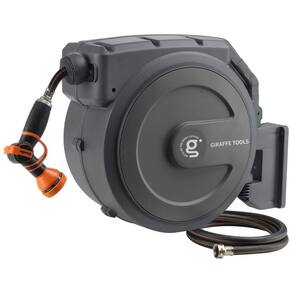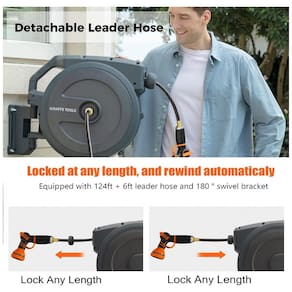MANGUEIRA DE JARDIM DE ALTA GRADE A mangueira híbrida flexível e resistente à abrasão para todos os climas garante que o carretel da mangueira seja resistente a vazamentos e duradouro. Os 39,6 metros de 1,27 centímetros, a mangueira retrátil passou no teste de pressão de 200 PSI e no teste de pressão de ruptura de 600 PSI.