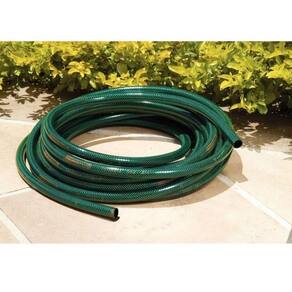 - Mangueira flexível e de fácil manuseio. - Possui 6 metros de comprimento. - Recomendada para situações de uso com pressão da água de até 10 bar [145 psi] e temperatura de 50 °C. - Para maior resistência possui 3 camadas distintas: interna em PVC, intermediária em fio de poliéster trançado e externa em PVC. - Acompanha 01 esguicho com jato regulável e 01 adaptador com engate rosqueado. - O esguicho possui prático sistema de regulagem do fluxo d'água através do regulador frontal. - O esguicho é conectado em mangueiras através de sistema de fixação rosqueado.