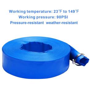 - Diâmetro: 2 polegadas; comprimento: 100 pés; pressão de trabalho: 90 PSI; faixa de temperatura: 23-147 graus (-5-65 graus Celsius) Forte resistência às intempéries, pode funcionar durante todo o ano