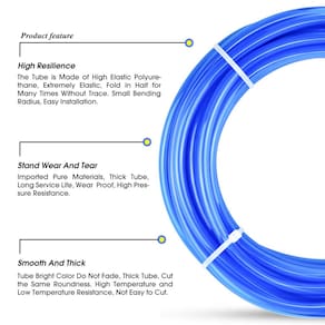 Características do produto: ?Usando flexível, tem alta elasticidade para restaurar o efeito de memória. ?Características da mangueira de ar PU: leve; resistência à abrasão e química; insípido; perda mínima de pressão; conveniente para tubulação, pois tem melhor flexibilidade do que tubos de nylon. ?Meio de funcionamento da mangueira de compressão de ar: ar comprimido, vácuo (não outro gás ou líquido); aplicação de tubo de ar: utilizado para tubulação de dispositivos pneumáticos. ?Alta flexibilidade, forte força de restauração, conecte e desconecte rápido e fácil sem outras ferramentas. ? Deve estar sob a pressão de trabalho e temperatura nominal, se você quiser manter este tubo de poliuretano em uma vida útil de longo prazo. À medida que a temperatura aumenta, a pressão de trabalho deve ser reduzida correspondentemente, se ultrapassar a limitação, o tubo pode romper. Especificações do produto: ?Material: PU; flexível, tem alta elasticidade para restaurar o efeito de memória. ?Tamanho: 1/5.1 cm OD x 8,5 mm ID ? Conteúdo da embalagem: 1 tubo de poliuretano OD (5 metros) ? Leve, resistência à abrasão, resistência à corrosão química, não tóxico, inodoro, baixa perda de pressão, melhor flexibilidade do que tubo de nylon, fácil transporte por tubulação. ? Faixa de uso: ferramentas pneumáticas pneumáticas; instrumentos, gasoduto mecânico; equipamento de automação de laboratório; água industrial geral e jardinagem. - ?Modelo?Tubo de poliuretano (5 metros) - ?Tamanho?12,7 mm OD(1/2") 8,5 mm OD - ?Pressão?Pressão operacional: 145psi - ?Temperatura de trabalho?--15,5 °C a 80 °C - ?Recurso de roduto?Força de restauração forte de alta flexibilidade, sem deformação com dobras, resistência a óleos sem crosivos