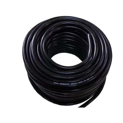 Mangueira Emborrachada Jardim Super Forte Preta 1/2 - 25MAs mangueiras jardim super forte elite são desenvolvidas atendendo todas as normas e padrões nacionais de fabricação e qualidade. Para uso doméstico, profissional e industrial. Fabricada em duas camadas de pvc flexível. O composto flexível de pvc utilizado proporciona excelente flexibilidade proporciona a resistência à média pressão. Uso indicado:- jardins, construção civil, irrigação, hortas, quintais, qualquer aplicação em que a condição exija resistência à pressão com flexibilidade, etc..Dicas de aplicação: - para aumentar a durabilidade da mangueira, não deixá-la exposta ao sol após o uso.- a temperatura máxima de trabalho da água deve ser 50c. Conteúdo da embalagem: mangueira jardim super forte elite - 1/2 polegada elite cor: preta pressão: 300 psi espessura da parede: 2,5mm comprimento: 25 metros