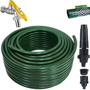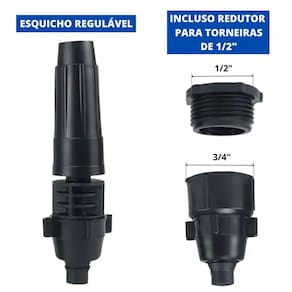 15M de Mangueira Trançada Flexível 01 Engate de Torneira 1/2 e 3/4 01 Esguicho Regulável 01 Torneira de Metal 1/2