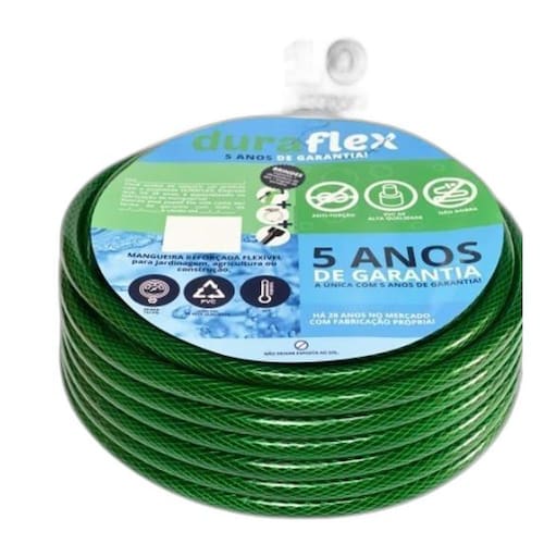 Mangueira trançada tripla camada duraflex as mangueiras duraflex tem uma flexibilidade excelente além de ser uma mangueira leve para trabalhar, extremamente durável. Esse modelo conta com reforço extra em suas tramas com fios de nylon de alta resistência de fato é uma mangueira forte, bonita, durável e que dura por muitos anos no seu quinta.