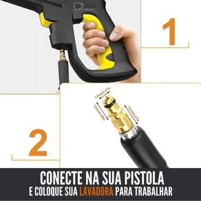 instalação em um piscar de olhos: nossa conexão rápida significa que você passa menos tempo montando e mais tempo limpando. Eficiência desde o primeiro clique. Durabilidade que faz a diferença: investir em nossa mangueira significa economizar no futuro. Sua construção robusta e resistência à abrasão e ao desgaste significam que ela estará ao seu lado, limpeza após limpeza.