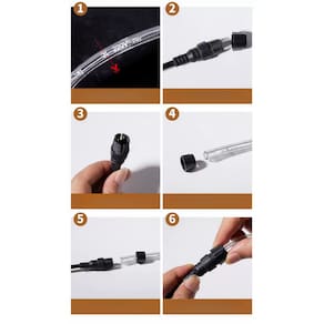 - Para cortar é bem simples, corte apenas onde tem o simbolo de uma tesoura e depois ligue ao conector de tomada na mangueira e conecte a rede elétrica para fazer a sua decoração.