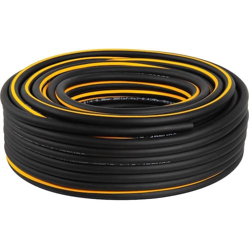 Características Técnicas:Diâmetro interno da mangueira: 1/4 - 6,35 mm Diâmetro externo da mangueira: 12,7 mm Espessura da parede da mangueira: 3,20 mm Material da mangueira: PVC com borracha nitrílica Pressão máxima de trabalho da mangueira PSI : 350 lbf/pol - 2,41 MPa Cor da mangueira: Preto Marca: Não Informado
