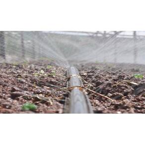 Mangueira de irrigação microperfurada a laser que produz microjatos de água direcionados para lateral a 45º do solo, irrigando 100% da área, com raio de alcance de até 2m para cada lado. Seu fino jato de água não causa erosão no solo e não remove as sementes do canteiro, molhando as folhas e o fruto