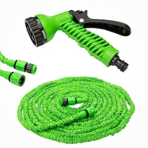 Mangueira que encolhe para irrigação mágica 15m lavar magica Cor: verde Mangueira mágica expansível/retrátil 15m com gatilho 7 em 1 Mangueira flexível que se expande até 3x o seu tamanho: 5m quando desligada até 15m quando ligada. Acompanha esguicho com 7 funções para melhor uso do jato de água. Maior pressão de água que mangueiras comuns. Fácil de guardar e manusear, sem enroscamentos. Possui reforço em metal nas pontas, proporcionando maior resistência. É excelente para você executar serviços domésticos como limpeza de garagens, pequenos quintais e jardins, carros e muito mais, com praticidade e eficiência.