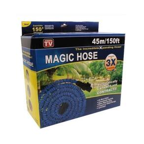 A mangueira retrátil de 45 metros ocupa pouco espaço de armazenamento. Resistente ao atrito e ao choque. Esta é uma nova mangueira que tem a qualidade de triplicar seu tamanho ao abrir a torneira de água. Ele volta ao seu tamanho quando a água é fechada, à medida que se contrai e fica menor até recuperar seu tamanho inicial. Facilita a rega. Ele se expande automaticamente. Luz.